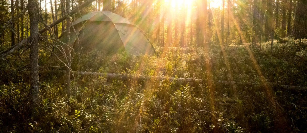 Margit und ich gehen es ruhig an: Erst wird das Zelt an einem der Gåsmyrtjärnarna aufgebaut, dann geht es mit leichtem Gepäck auf Wanderschaft zum Tjädervintjärnen. Wir gehen auf Bohlenwegen, klettern über umgestürzte Bäume und saugen den betörenden Luft des Waldes in uns auf. Wie unglaublich schön es hier ist! Kein Verkehr, keine Menschen – nur wir beide und eine erfreute Husky-Dame.